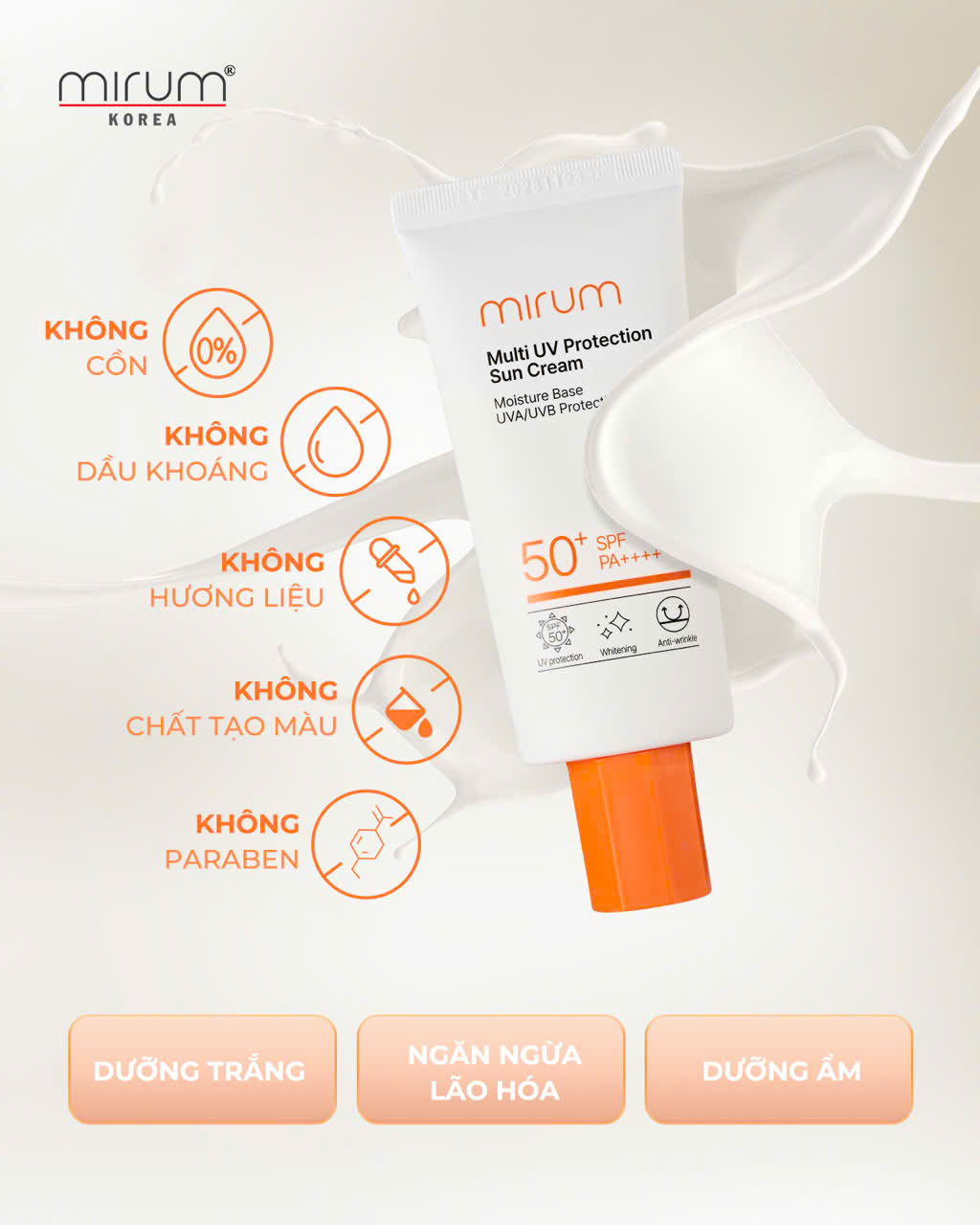 Kem chống nắng nâng tông, dưỡng trắng, ngừa lão hóa và bảo vệ da toàn diện Mirum sản phẩm kem chống nắng thuộc thương hiệu Mirum Hàn Quốc được khách hàng đánh giá 4.9/5 sao.